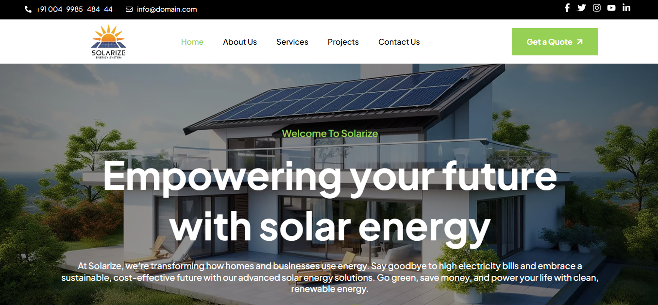Developed a modern and informative website for Solarize Energy Solutions, a company dedicated to delivering reliable solar and renewable energy services. The site showcases their expertise in solar panel installation, energy consultancy, efficiency solutions, and project management.